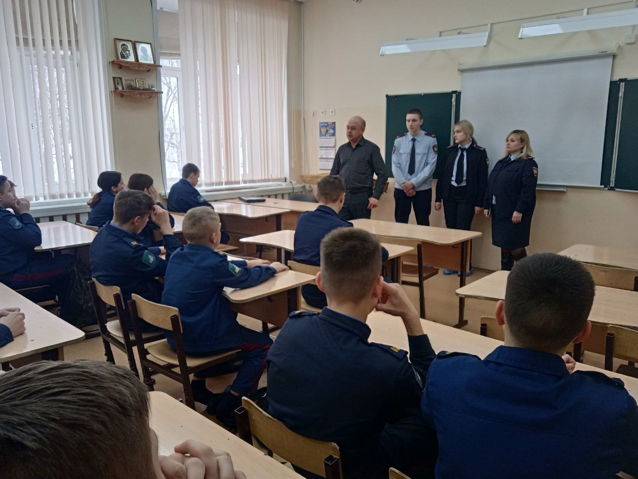 Сегодня в МБОУ «СОШ № 2 с кадетскими классами» г. Великий Устюг прошла мотивационная встреча, на которой амбассадоры и преподаватели колледжа рассказали школьникам 8-9 классов о Федеральном проекте «Профессионалитет», более подробно о кластере «Правоохранительная деятельность», студенческой жизни и о возможности трудоустройства после окончания колледжа.