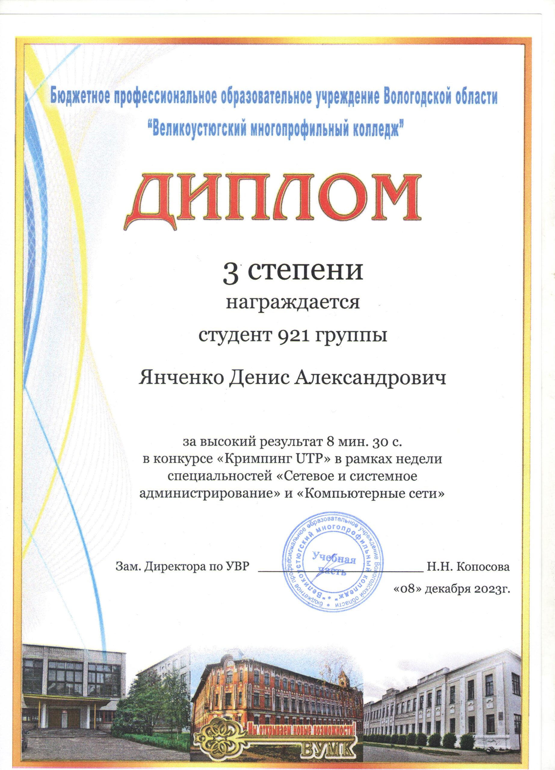 Денис учится по профессии «Сетевое и системное администрирование», демонстрируя яркие таланты и упорство в достижении целей. Его увлечения охватывают широкий спектр направлений: творчество, упорство в учебе.